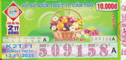 Mẫu vé số Cần Thơ ngày 12/11/2025